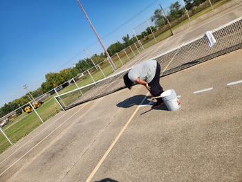 Pickleball is a rising sport and we wanted the community to be able to play if they wanted to. Seniors, Kaden Wurm and Anthony Parker used some time in Ms. Harvey's Lifetime Sports classes to paint pickleball lines on the other tennis court. There are now two pickleball courts available to play on at the school. Thank you seniors for doing this for the school and community.