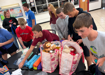 On September 24th the Rock Hills National Honor Society and Student Council spent time packing bookbags with comfort items that will be given to children in the Jewell County area when they enter into foster care. These items include: hair brush, toothbrush, a blanket, a stuffed animal, a journal, and other comfort items! Thank you to Jewell County Health 365 for including Rock Hills in this project!