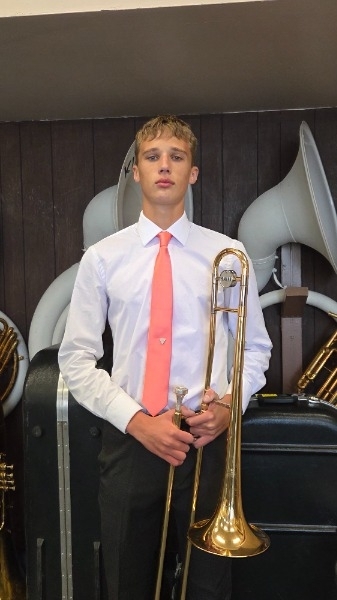 Nolan Grout was chosen to be in the High school Northwest District Jazz band concert and clinic on Saturday, November 8 at Norton, Kansas. Students from across northwest Kansas auditioned for a spot in the groups and then, when they were chosen, rehearsed Saturday from 8:30-3 with a concert at 3:30. Nolan Grout was chosen as 2nd chair trombone in the High school Jazz band and had a trombone solo on one piece at the concert.