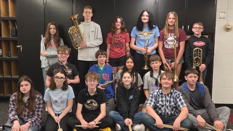 The Jr. High Music Department traveled to Downs on March 4 to participate in the Pike Trail League Jr. High Music Contest. The students participated as a band, as small ensembles and as soloists. Our accompanist was Gaye Daniels. The results are as follows: 7/8 Band, 1, 2+, Keegan Hollerich Vocal solo 1+, Keegan Hollerich Flute solo 1, Evan Grout-Baritone Horn solo 1-, Hunter Jernigan, Trombone solo 1, Lily Walker Trombone solo 1-, Makaya Juarez Snare Drum solo 1, Knox Eilert Snare Drum solo 1-, Joe Rutledge Snare Drum solo 1-, Sax Duet Cole Fultz, Jace Badger 2, Mixed Quintet Aubree Dunn, Ryleigh McCary, Lily Walker, Adam Rutledge, Ellie Luong 2, Snare Drum duet Joe Rutledge, Callyn Nash 1-